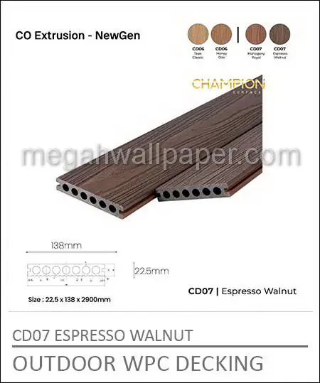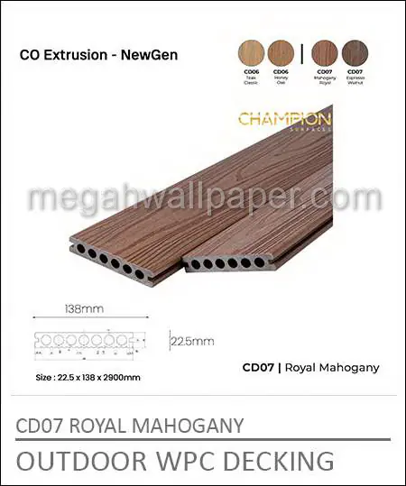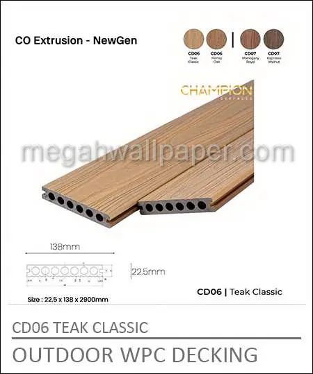 Adalah salah satu Distributor Interior terlengkap saat ini. Megah Wallpaper sudah berdiri sejak tahun 1998, dan lokasi kami di Jakarta Barat. Kami sedia segala kebutuhan Interior untuk Office, Home, Studio, dan untuk ruangan Anda lainnya. Oleh karena itu, salah satu produk terbaik kami adalah Champion Outdoor Decking.