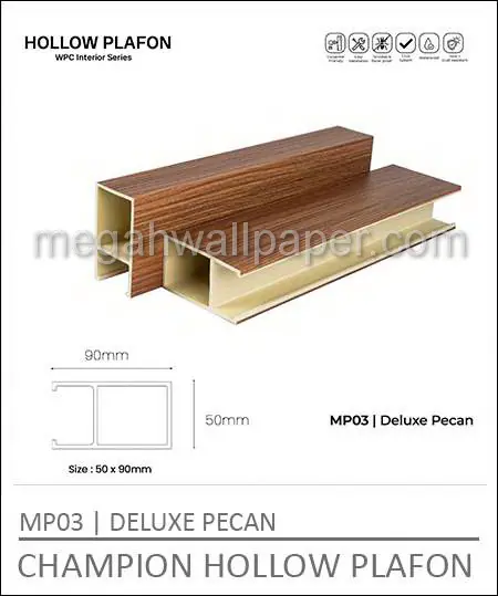 Perlu Anda ketahui bahwa Champion Hollow Plafon Indoor kuat hingga lebih dari 10 tahun, Tetapi untuk perawatannya relatif sangat mudah. Asalkan sisa barang Anda simpan, dengan sisa barang itu kerusakan akan dapat diperbaiki dengan mudah. Jangan ragu ragu lagi, segera percantik ruangan Anda karena kami punya beragam model produk untuk Anda pasang di Rumah atau Kantor Anda.