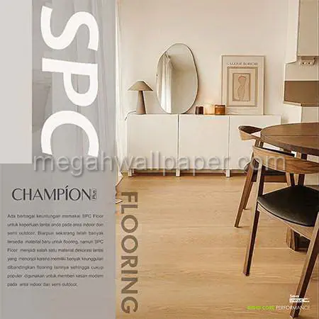 Perlu Anda ketahui bahwa produk Champion SPC Rigidcore kuat hingga lebih dari 10 tahun, Tetapi untuk perawatannya relatif sangat mudah. Asalkan sisa barang Anda simpan, dengan sisa barang itu kerusakan akan dapat diperbaiki dengan mudah. Jangan ragu ragu lagi, segera percantik ruangan Anda karena kami punya beragam model produk untuk Anda pasang di Rumah atau Kantor Anda.