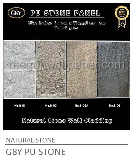 Perlu Anda ketahui bahwa G8Y PU Stone kuat hingga lebih dari 10 tahun, Tetapi untuk perawatannya relatif sangat mudah. Asalkan sisa barang Anda simpan, dengan sisa barang itu kerusakan akan dapat diperbaiki dengan mudah. Jangan ragu ragu lagi, segera percantik ruangan Anda karena kami punya beragam model produk untuk Anda pasang di Rumah atau Kantor Anda.