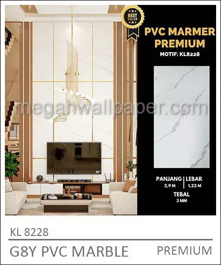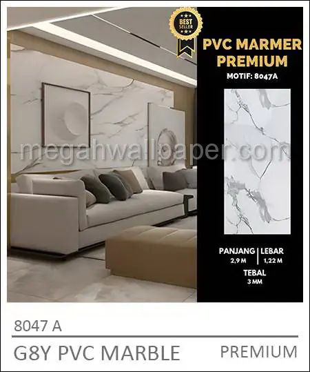Perlu Anda ketahui bahwa G8Y PVC Marble/Marmer kuat hingga lebih dari 10 tahun, Tetapi untuk perawatannya relatif sangat mudah. Asalkan sisa barang Anda simpan, dengan sisa barang itu kerusakan akan dapat diperbaiki dengan mudah. Jangan ragu ragu lagi, segera percantik ruangan Anda karena kami punya beragam model produk untuk Anda pasang di Rumah atau Kantor Anda.