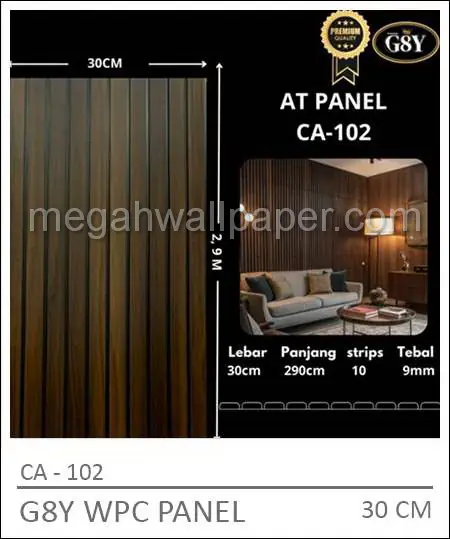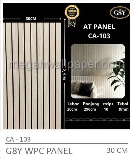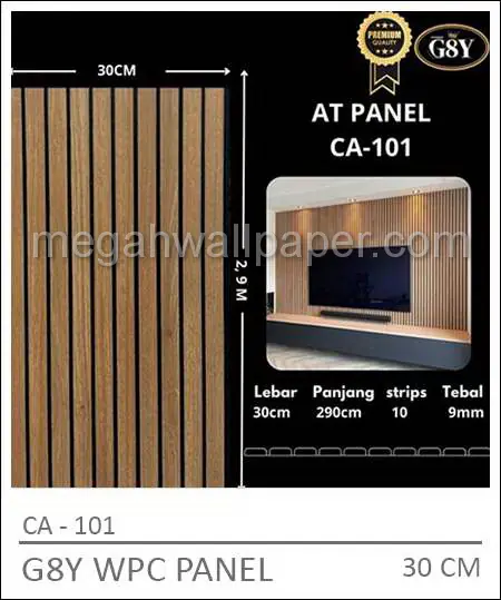 Perlu Anda ketahui bahwa G8Y Wall Panel/Wallpanel 30cm kuat hingga lebih dari 10 tahun, Tetapi untuk perawatannya relatif sangat mudah. Asalkan sisa barang Anda simpan, dengan sisa barang itu kerusakan akan dapat diperbaiki dengan mudah. Jangan ragu ragu lagi, segera percantik ruangan Anda karena kami punya beragam model produk untuk Anda pasang di Rumah atau Kantor Anda.