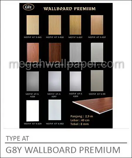 Perlu Anda ketahui bahwa G8Y Wallboard/Wall Board kuat hingga lebih dari 10 tahun, Tetapi untuk perawatannya relatif sangat mudah. Asalkan sisa barang Anda simpan, dengan sisa barang itu kerusakan akan dapat diperbaiki dengan mudah. Jangan ragu ragu lagi, segera percantik ruangan Anda karena kami punya beragam model produk untuk Anda pasang di Rumah atau Kantor Anda.